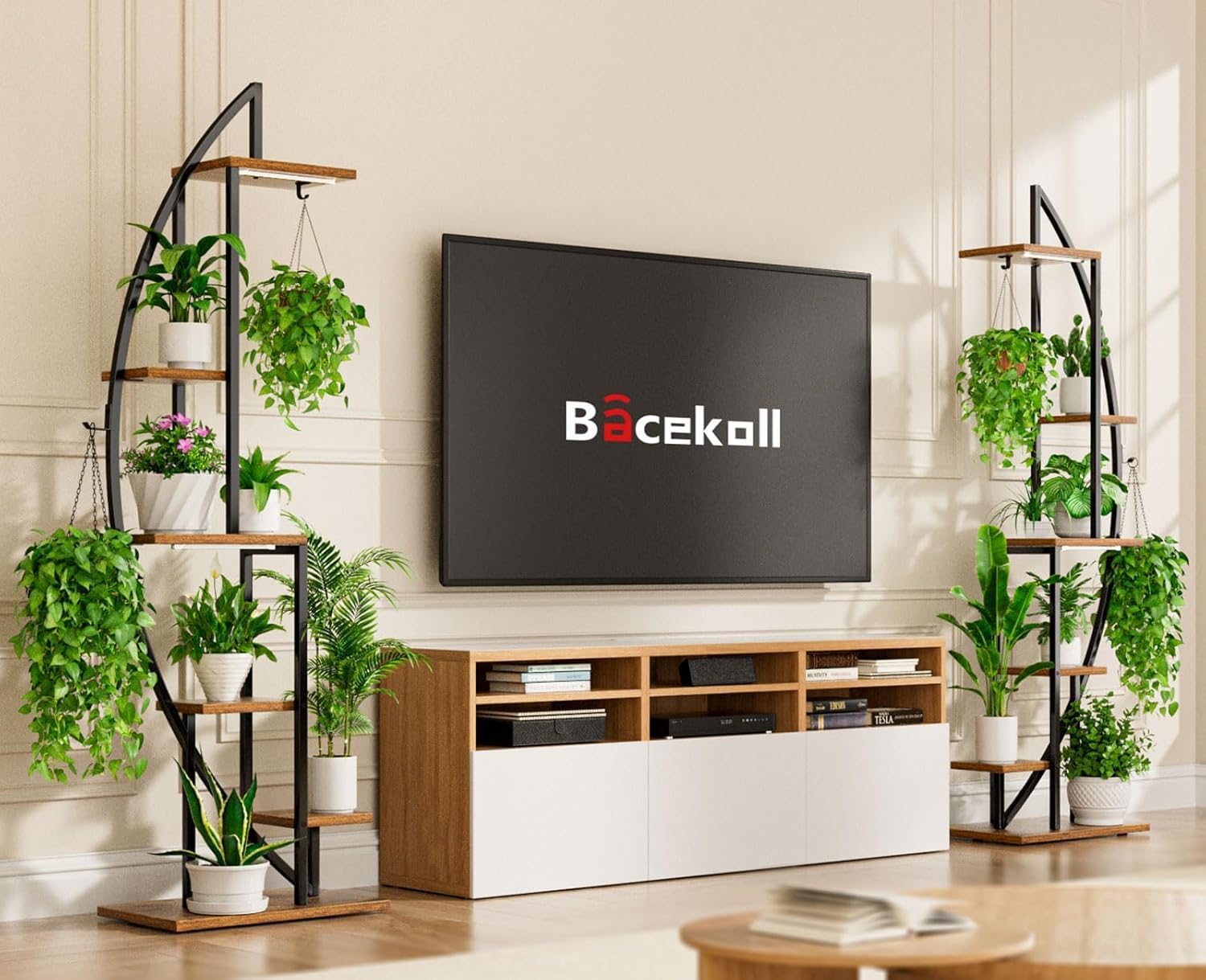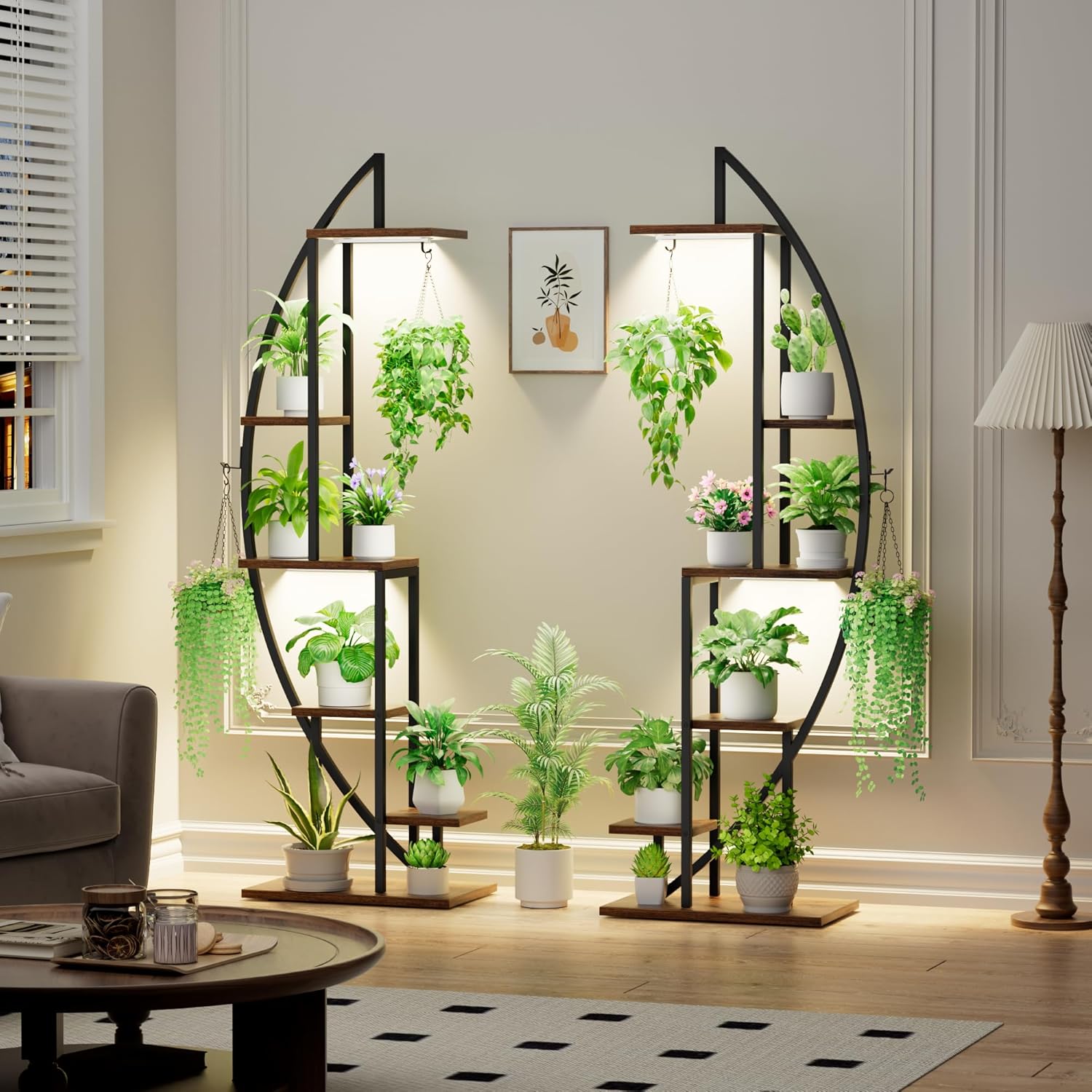 BACEKOLL Plant Stand Indoor with Grow Lights, 6 Tiered Tall Plant Shelf, Metal Plant Stand for Indoor Plants Multiple, Half-Moon Plant Rack Display Shelf, 2 Pcs Plant Holder for Living Room, Patio
