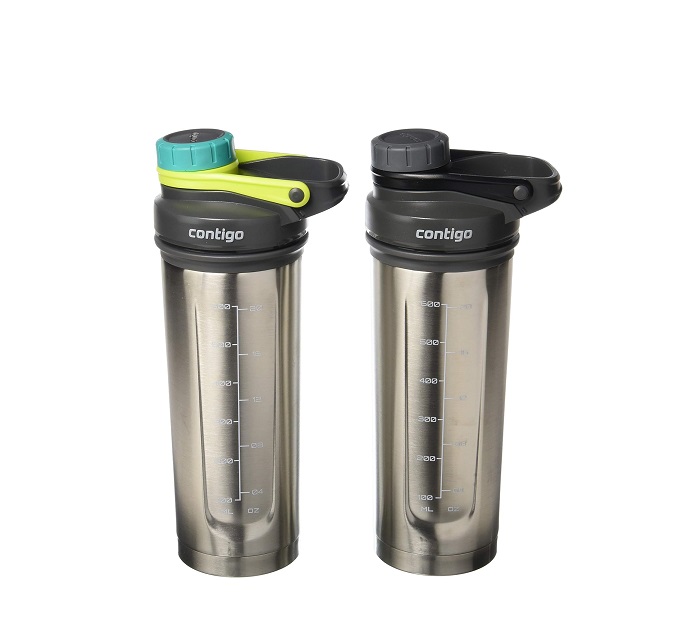 Contigo Shake & Go Fit Stainless Steel Shaker Bottle, 24 oz, Flash, 2-Pack