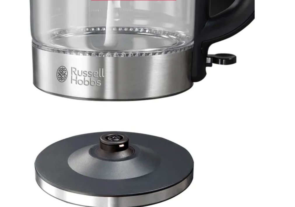 Russell Hobbs Illuminating 1.7L Electric Cordless Glass Kettle with black/brushed stainless steel accents (Fast Boil 3KW, Washable anti-scale filter, Button to open lid, Perfect pour spout) 21600-10