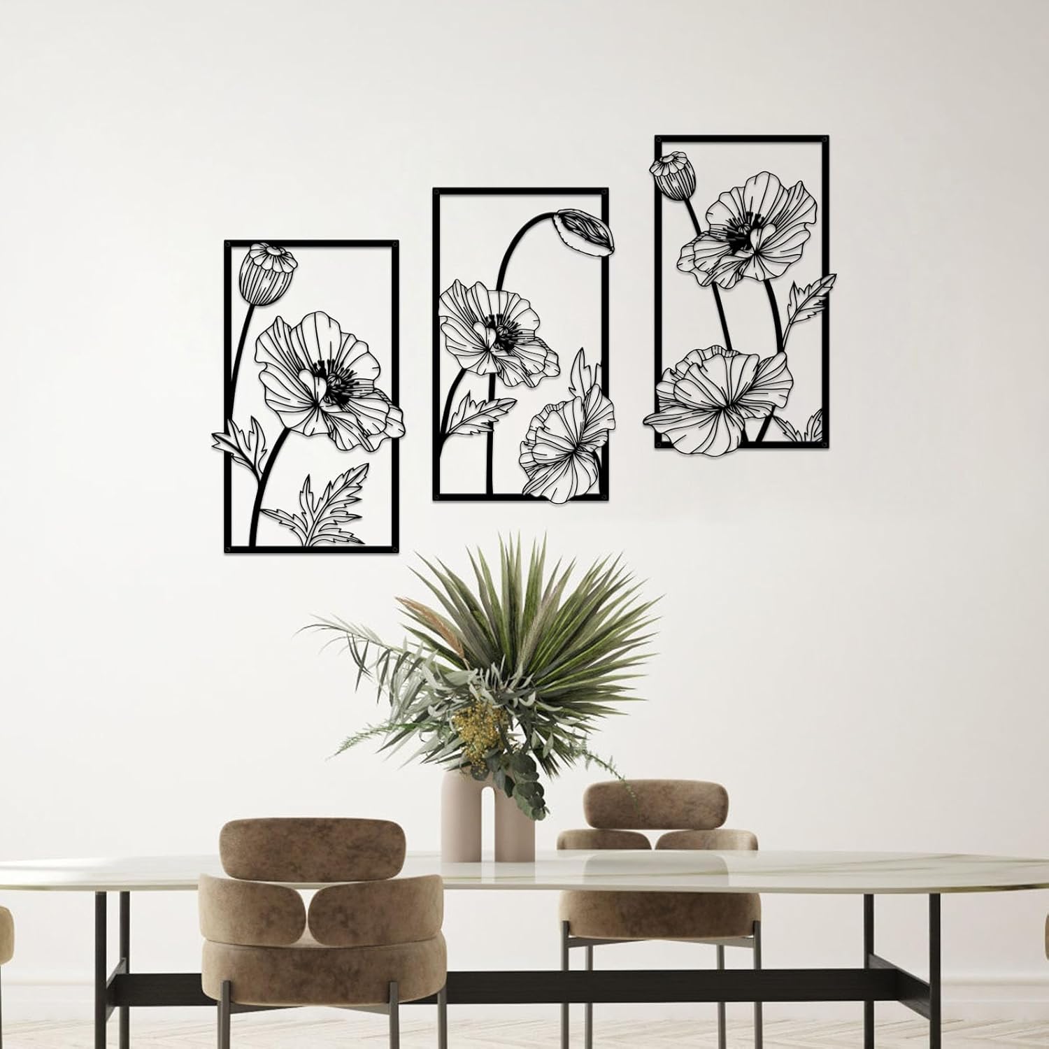 • Size: The metal floral wall decor is approx. 17x 10.2 inches in length and width, appropriate dimension to fit various areas in your home. the floral minimalist line art wall is also good for the kitchen art wall decor of apartment, bedroom, living room and bathroom,and they won’t occupy much space on your countertop or dining table