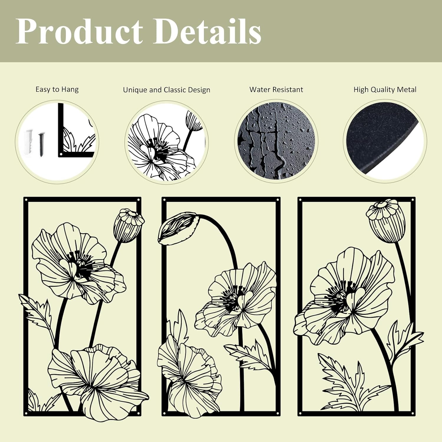 • Modern Wall Decor: our 3 pcs black metal wall art is designed in black color and stylish shape, full of elegance and chicness, easy to draw others’ attention and stylish, so they will make your home or office full of modern and elegant atmosphere