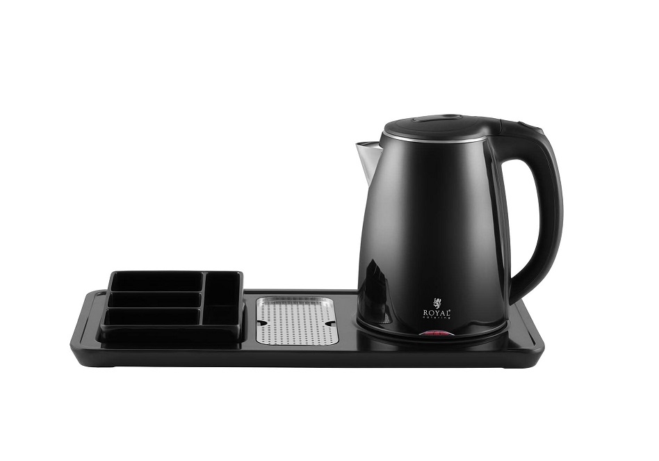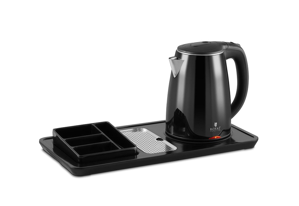 Royal Catering Electric Kettle Hot Water Kettle Boiler Coffee & Tea Station Wireless 1.2L 1800W RC-HKS01 (Stainless Steel, Plastic, Limescale Filter, Drip Tray, Swivel Base)