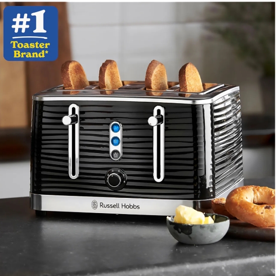 Russell Hobbs Inspire 4 Slice Toaster (Extra wide slots, High lift feature, 6 Browning levels, Frozen/Cancel/Reheat function with Blue LED illumination, 1800W, Grey textured high gloss) 24383