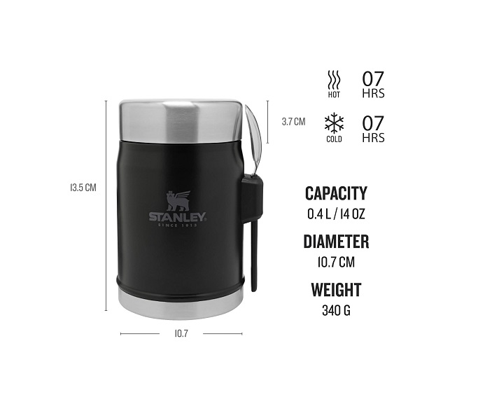 Be the first to review “Stanley Classic Legendary Food Jar 0.4L With Spork – Keeps Cold For 7 Hours – BPA-Free Stainless Steel Soup Flask – Leakproof – Dishwasher Safe – Matte Black” Cancel reply