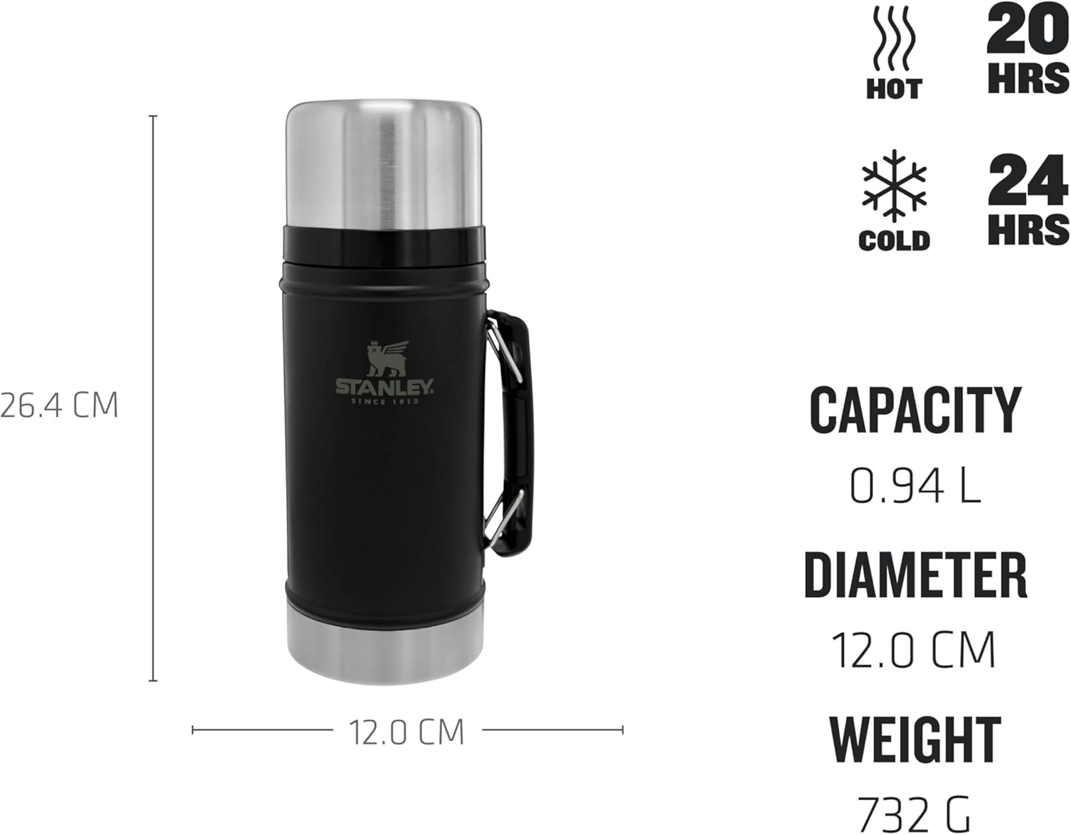 Stanley Classic Legendary Food Jar 0.94L – Hot for 20 Hours – BPA-Free – Stainless Steel Coffee Flask – Leakproof Lid Doubles As Cup – Dishwasher Safe – Thermal Lunch Box