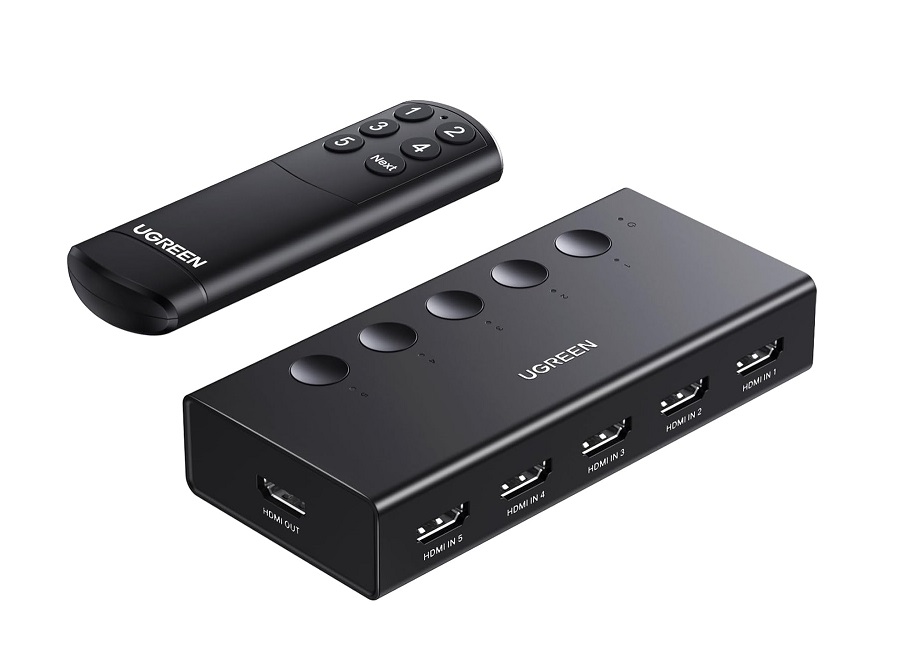 UGREEN HDMI Switch 5 in 1 Out 4K@60Hz, HDMI Splitter with Remote 5 Port Switcher Selector Box Support 3D CEC HDR HDCP2.2 Compatible with PS5/4/3 Xbox Nintendo Switch Roku TV Fire Stick Black